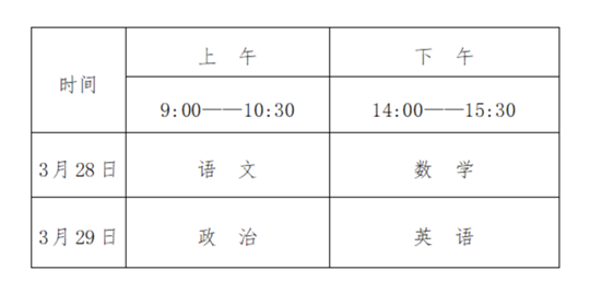 文化考試科目為語(yǔ)文、數(shù)學(xué)、政治、英語(yǔ)四科,每科滿分為150分,四科滿分為600分。