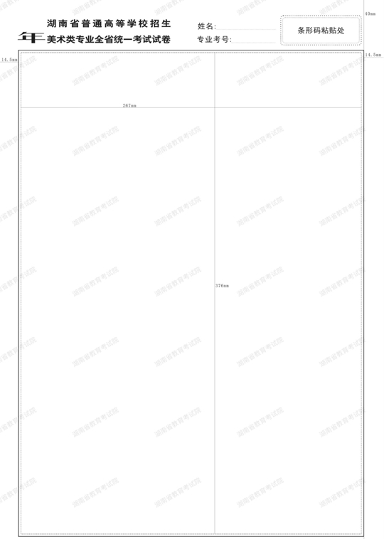 考試時統(tǒng)一配發(fā)的畫紙樣式