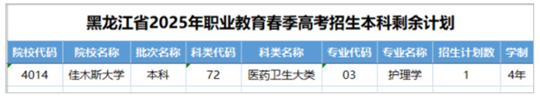 剩余計劃信息:4014佳木斯大學-72醫(yī)藥衛(wèi)生大類-03護理學。