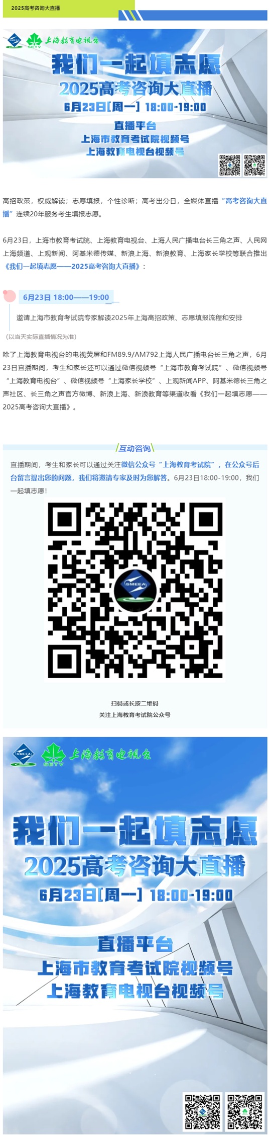 上海:6月23日,“我們一起填志愿”2025年高考咨詢大直播來了