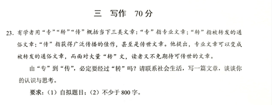 2025年上海市普通高校招生統(tǒng)一文化考試語文科目考試寫作題目如下——