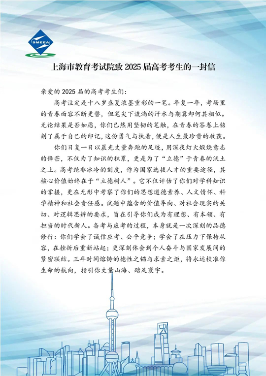 上海市教育考試院致2025屆高考考生的一封信