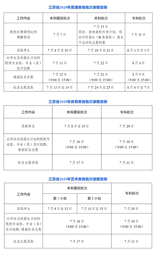 | 江蘇省2025年普通高校招生錄取批次及時間安排 |