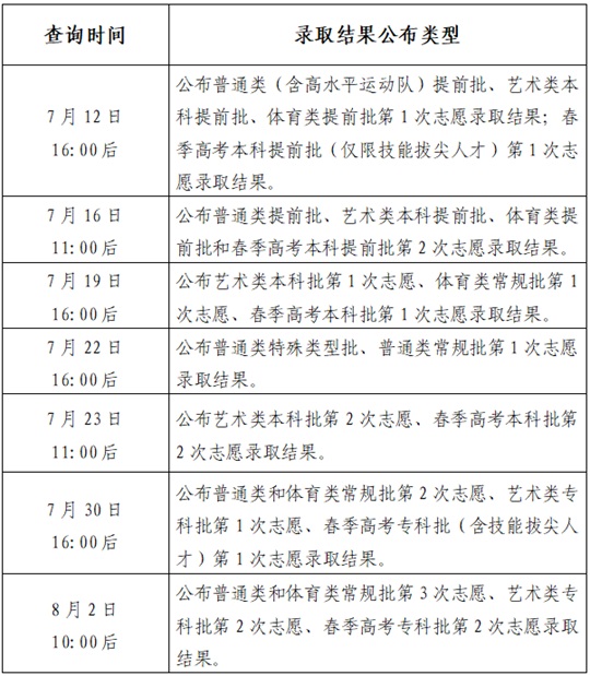 二、錄取結(jié)果查詢時(shí)間及類(lèi)型