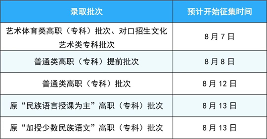 8月各批次預(yù)計(jì)征集志愿時(shí)間表