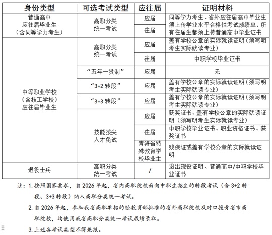 特別提醒:請(qǐng)考生慎重選擇“3+2轉(zhuǎn)段”“3+3轉(zhuǎn)段”考試類型,只有選擇了“3+2轉(zhuǎn)段”“3+3轉(zhuǎn)段”考試類型的考生,才能夠被錄取到簽訂協(xié)議的高職院校相關(guān)專業(yè)。省內(nèi)高職院!3+2轉(zhuǎn)段”“3+3轉(zhuǎn)段”(對(duì)應(yīng)表詳見2026年1月12日在青海省教育考試網(wǎng)發(fā)布的《青海省2026年高職院校分類考試招生工作通知》附件2)。