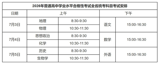 2026年普通高中學業(yè)水平合格性考試全省統(tǒng)考科目考試安排