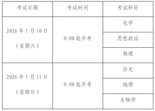 2026年1月上海市普通高中學業(yè)水平六科合格性考試將于1月10日至11日舉行。本次考試采用上機考試的形式,考試科目和時間安排如下: