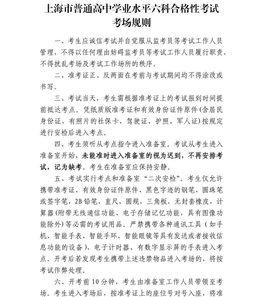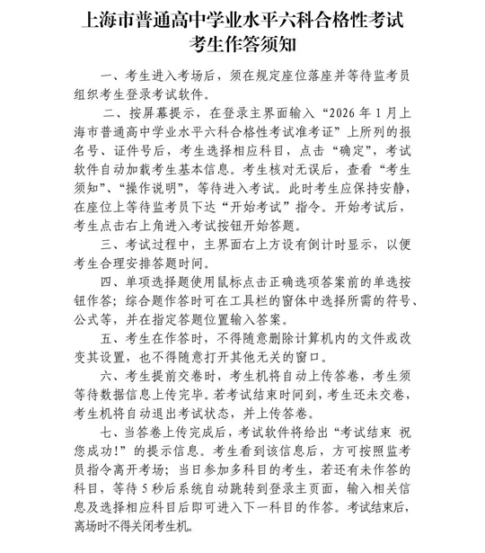 | 上海市2026年1月普通高中學業(yè)水平六科合格考將于1月10日-11日舉行,速看考前提醒 |