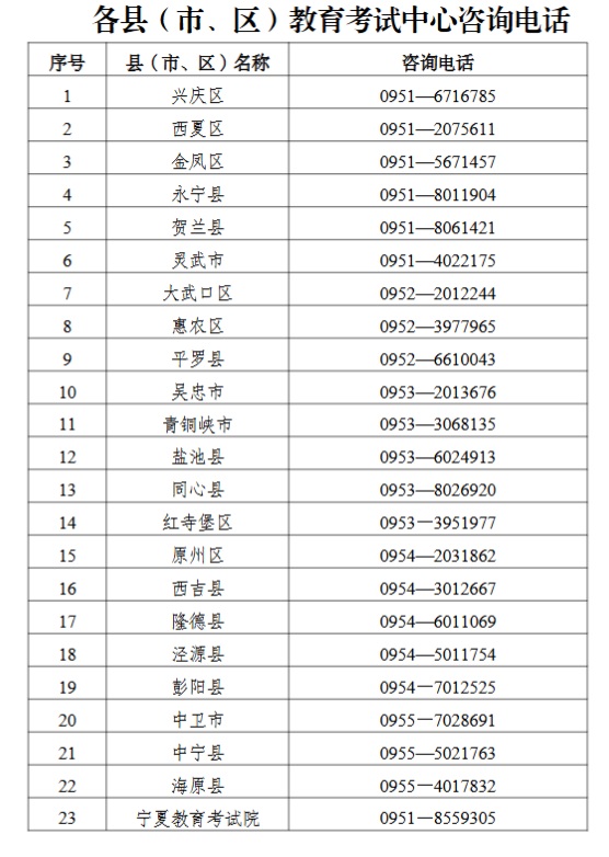 4.各縣(市、區(qū))教育考試中心咨詢電話