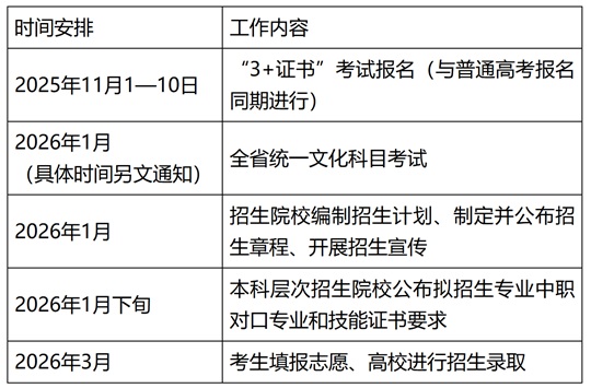 各院校2026年“3+證書”考試招生計劃原則上不少于2025年。