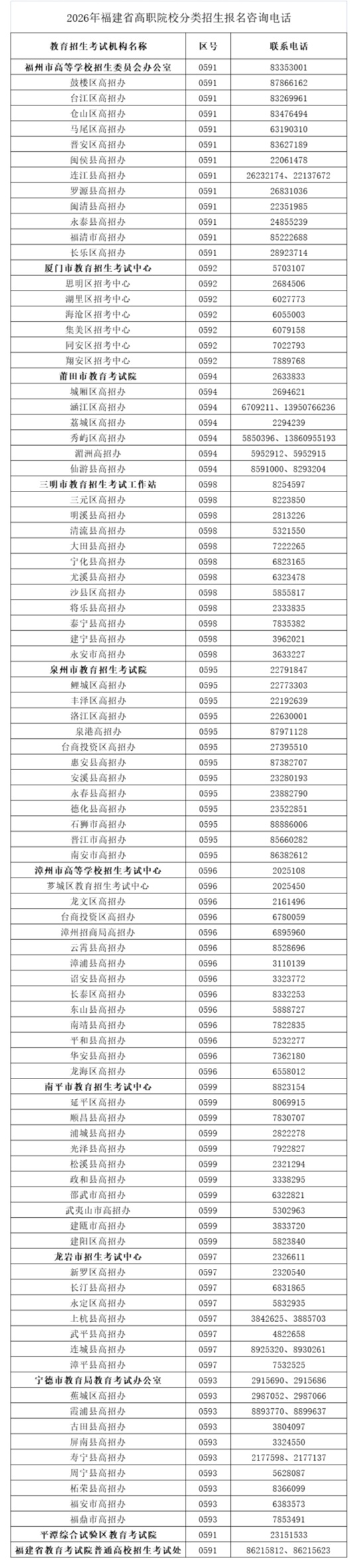 根據(jù)《福建省高等學(xué)校招生委員會(huì) 福建省教育廳關(guān)于做好2026年普通高等學(xué)校招生考試報(bào)名工作的通知》(閩招委〔2025〕9號(hào))和《福建省教育廳關(guān)于印發(fā)<福建省高職院校分類(lèi)考試招生改革實(shí)施辦法>的通知》(閩教學(xué)〔2019〕35號(hào))等文件精神,為做好2026年我省高職院校分類(lèi)考試招生(以下簡(jiǎn)稱(chēng)“高職分類(lèi)招考”)報(bào)名工作,現(xiàn)將有關(guān)事項(xiàng)通知如下。