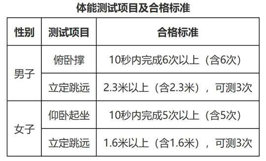 高考成績達到普通類本科批次控制分數(shù)線,并填報中央司法警官學院志愿的考生,均可參加由陜西省監(jiān)獄管理局組織的體能測試、體檢和面試。