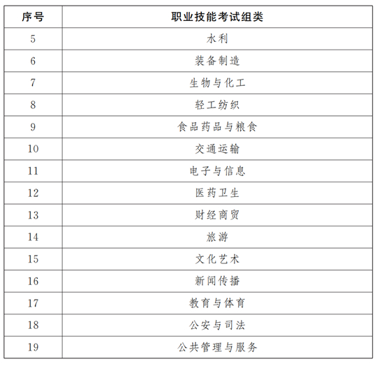 根據(jù)《職業(yè)教育專業(yè)目錄》,將職業(yè)技能考試劃分為19個組類,對應(yīng)19個專業(yè)大類。