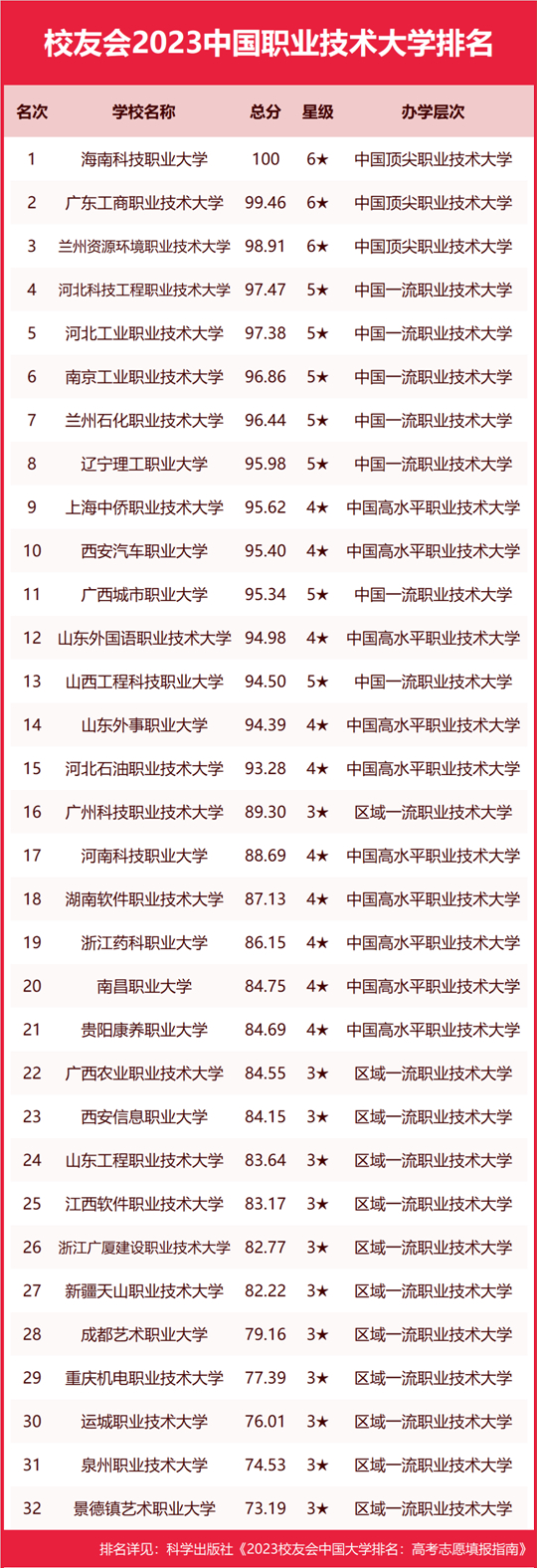 | 校友會2023中國職業(yè)技術(shù)大學(xué)排名,海南科技職業(yè)大學(xué)蟬聯(lián)第一 |