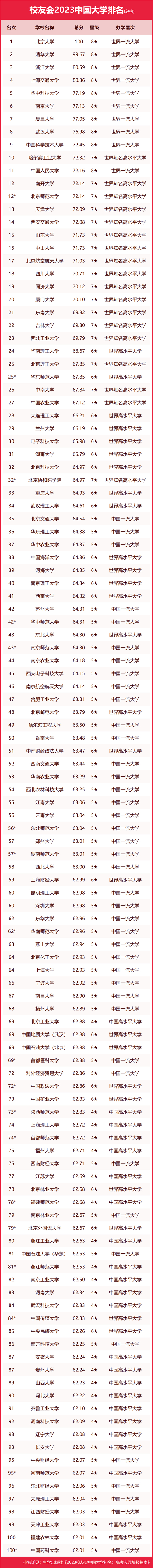 | 校友會(huì)2023中國大學(xué)排名發(fā)布 |