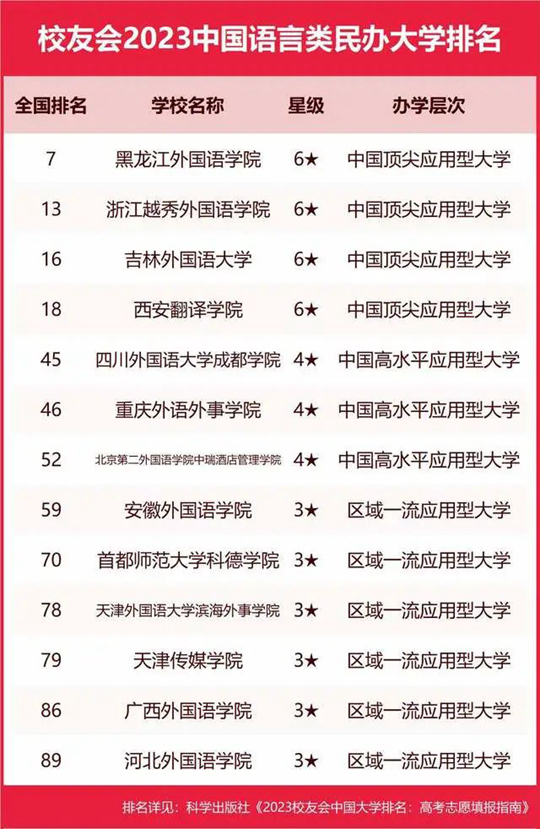 西安歐亞學(xué)院、昆明城市學(xué)院、武漢學(xué)院、福州外語外貿(mào)學(xué)院、山東協(xié)和學(xué)院位列2023中國民辦大學(xué)排名Ⅲ類前5名。