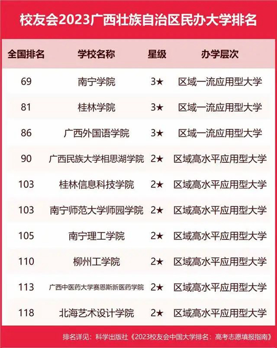 三亞學(xué)院、廣州南方學(xué)院、四川大學(xué)錦江學(xué)院、西安培華學(xué)院、天津仁愛學(xué)院位列2023中國民辦大學(xué)排名Ⅱ類前5強(qiáng)。