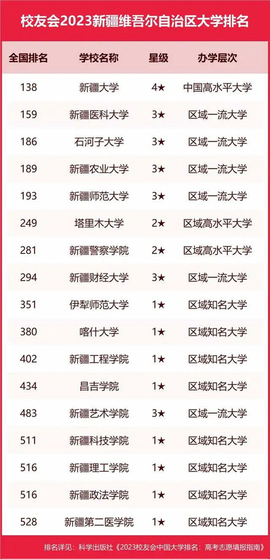 2023中國各地區(qū)大學(xué)排名