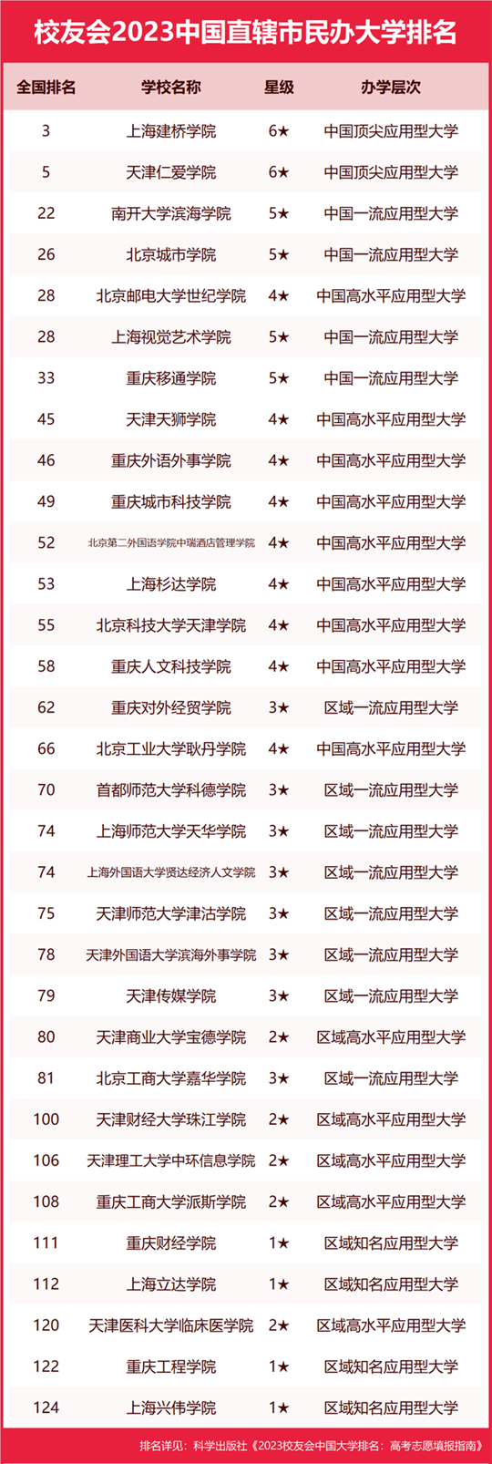 上海建橋?qū)W院勇奪2023中國直轄市民辦大學(xué)排名首位,天津仁愛學(xué)院前二