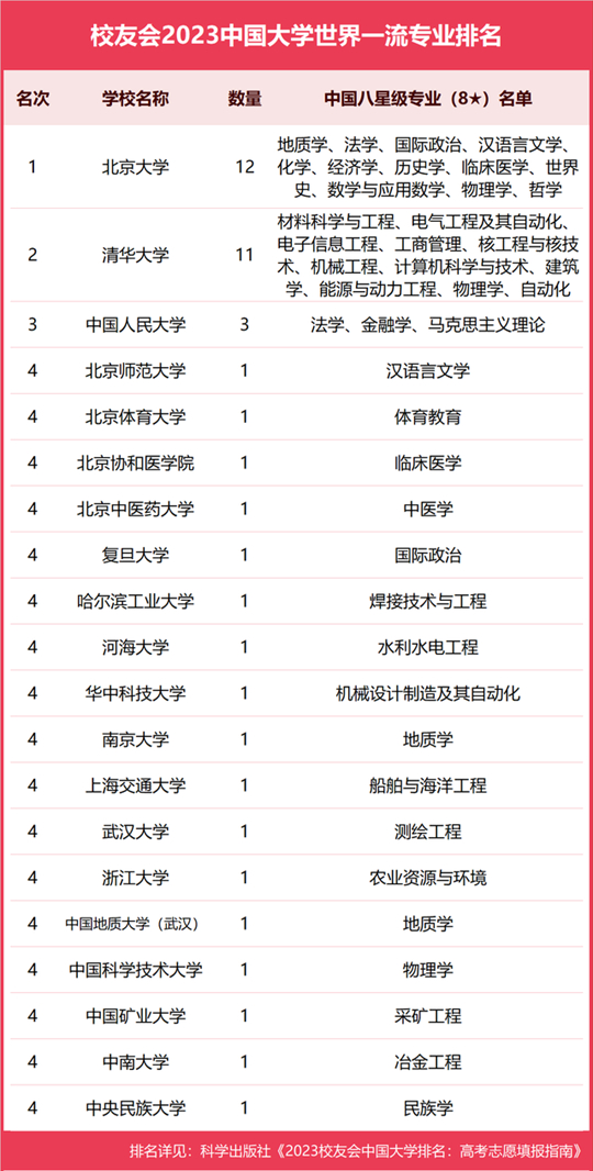 | 重磅發(fā)布:校友會(huì)2023中國大學(xué)一流專業(yè)排名 |