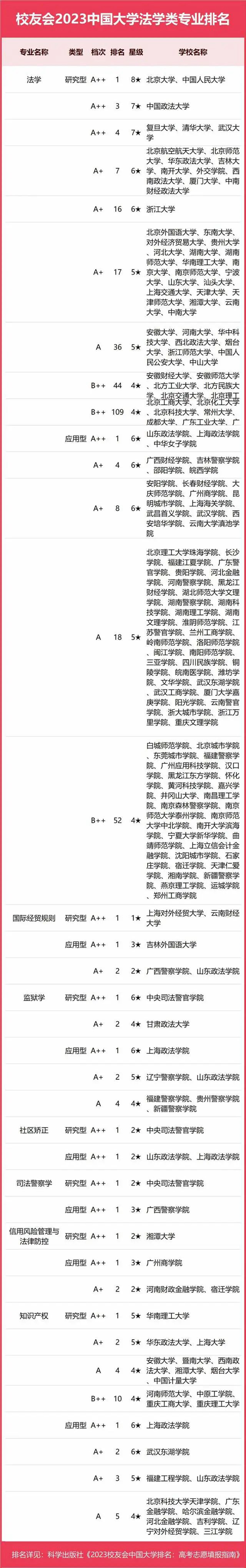 2023中國大學(xué)法學(xué)類專業(yè)排名
