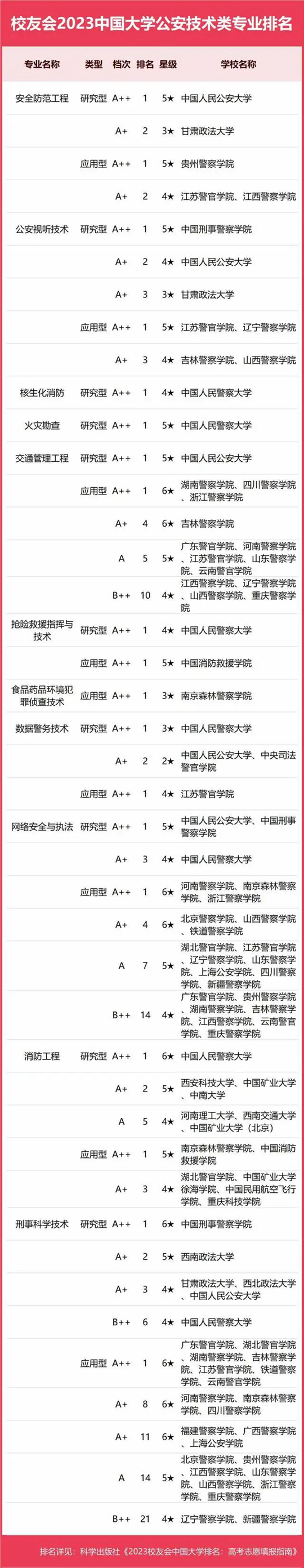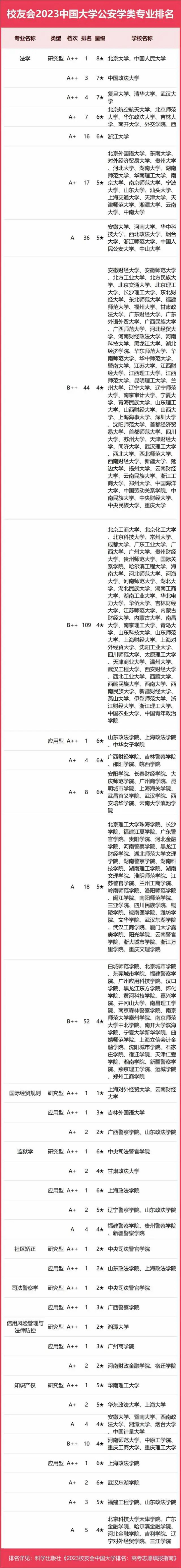 2023中國大學(xué)公安學(xué)類專業(yè)排名