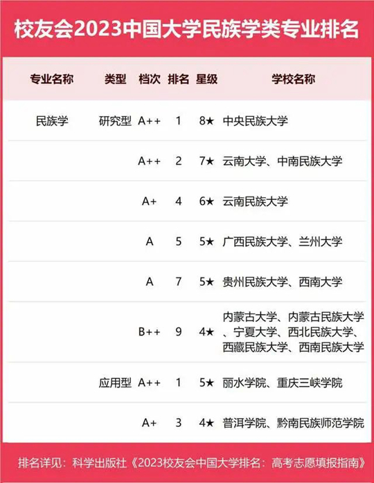 2023中國大學(xué)民族學(xué)類專業(yè)排名