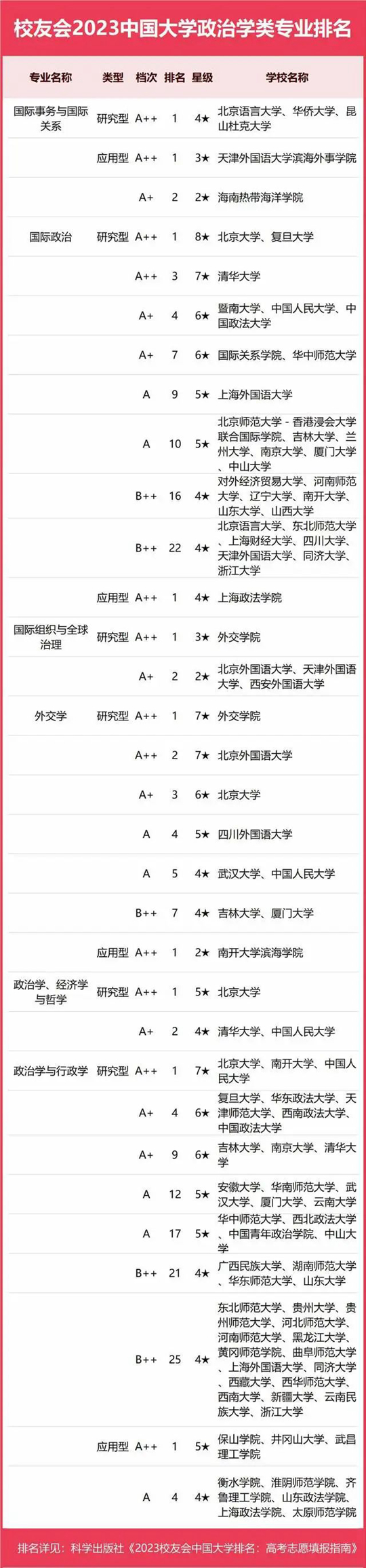 2023中國大學(xué)政治學(xué)類專業(yè)排名
