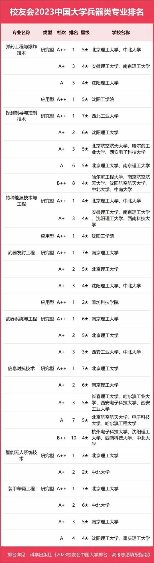 2023中國大學(xué)兵器類專業(yè)排名