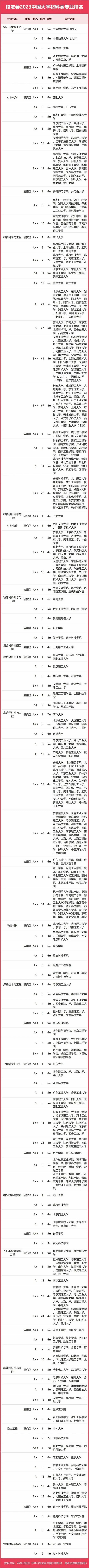 2023中國大學(xué)材料類專業(yè)排名