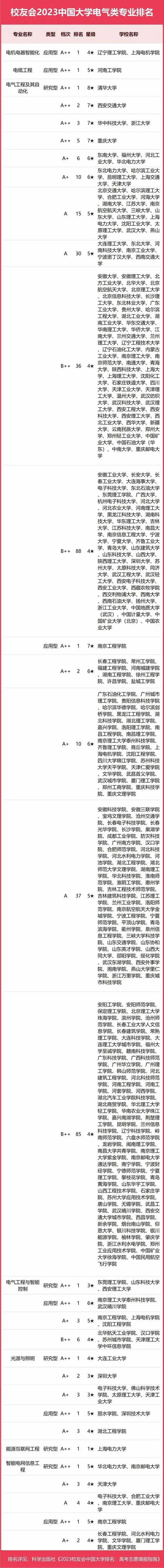 2023中國大學(xué)電氣類專業(yè)排名