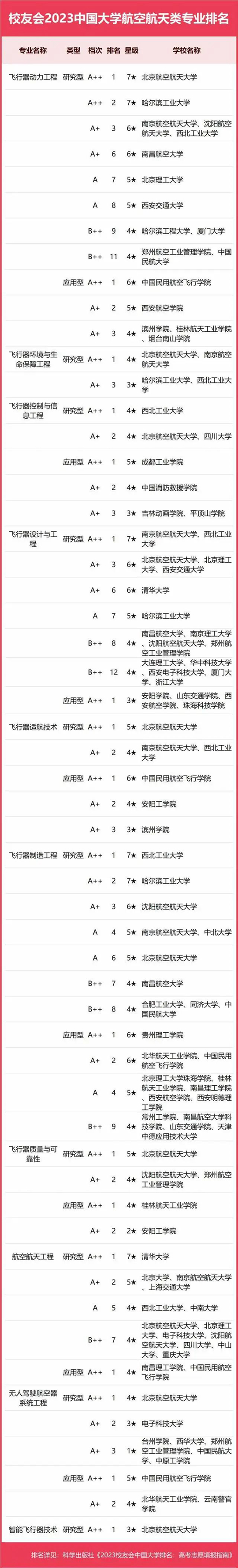2023中國大學(xué)航空航天類專業(yè)排名