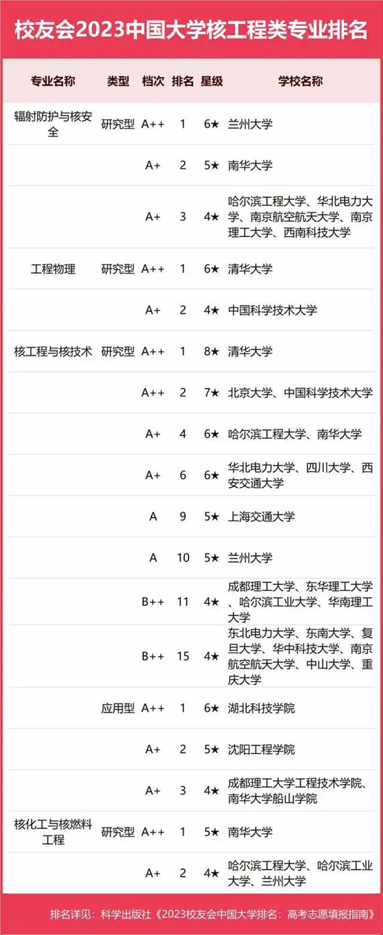 2023中國大學(xué)核工程類專業(yè)排名