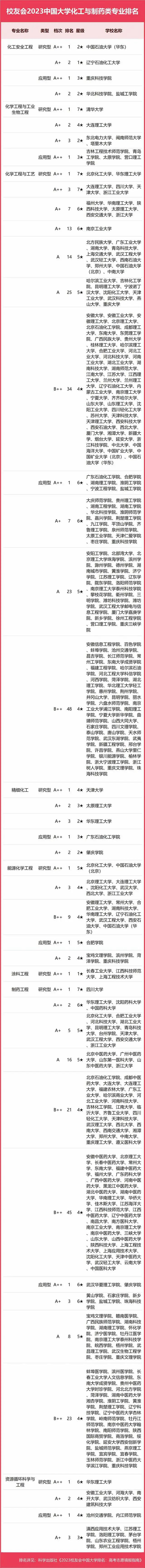 2023中國大學(xué)化工與制藥類專業(yè)排名