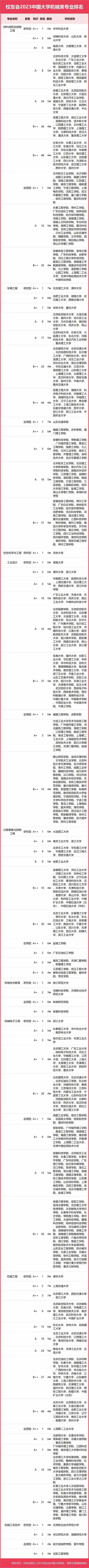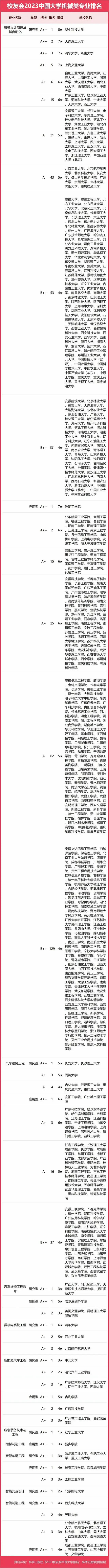 2023中國大學(xué)機(jī)械類專業(yè)排名