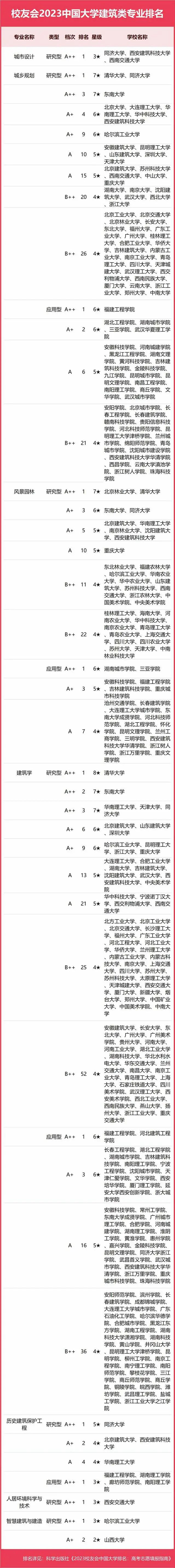 2023中國大學(xué)建筑類專業(yè)排名