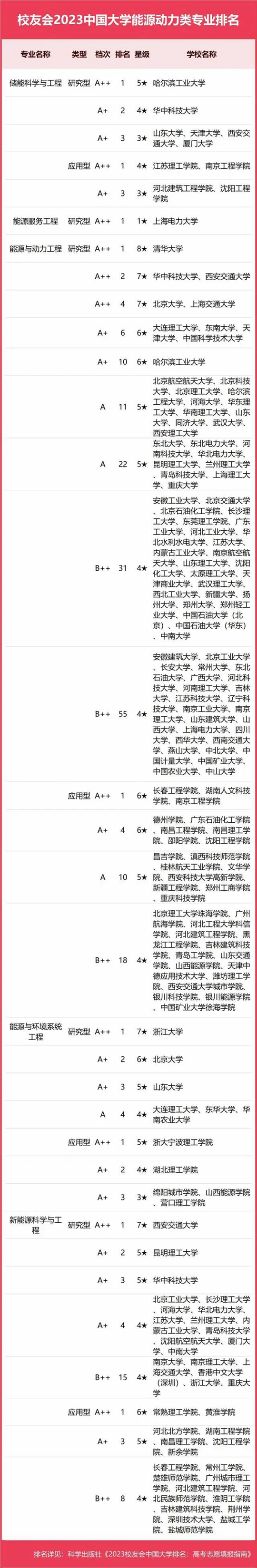 2023中國大學(xué)能源動(dòng)力類專業(yè)排名