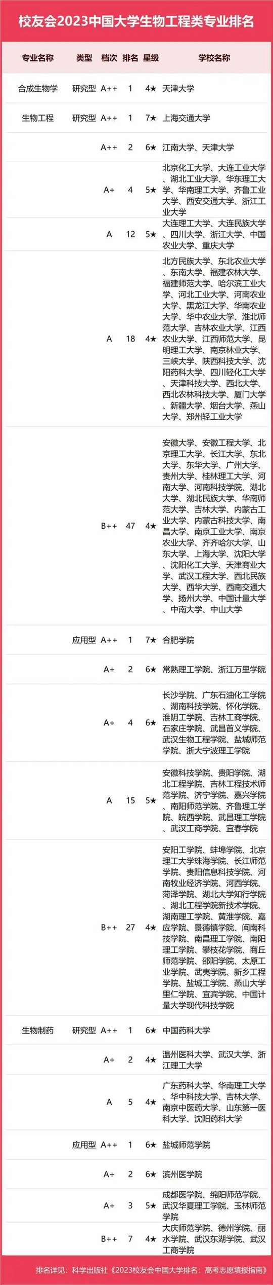 2023中國大學(xué)生物工程類專業(yè)排名