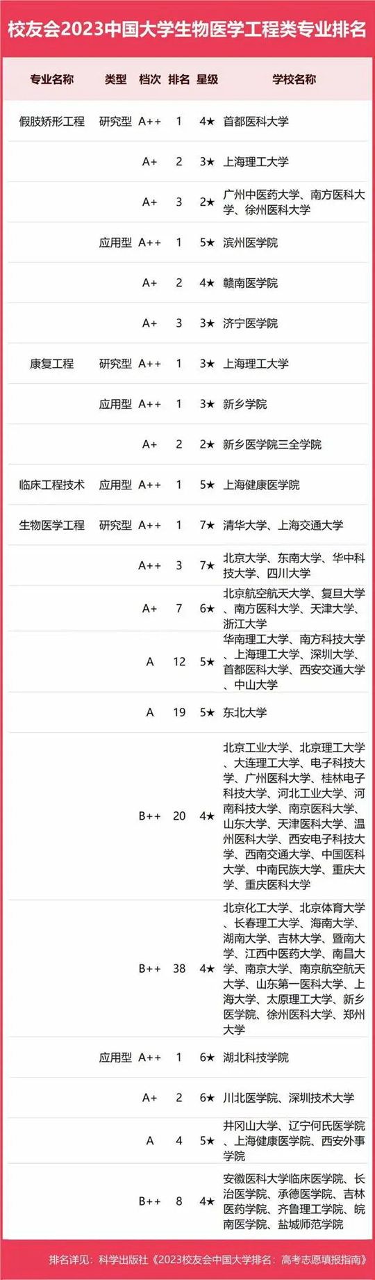 2023中國大學(xué)生物醫(yī)學(xué)工程類專業(yè)排名