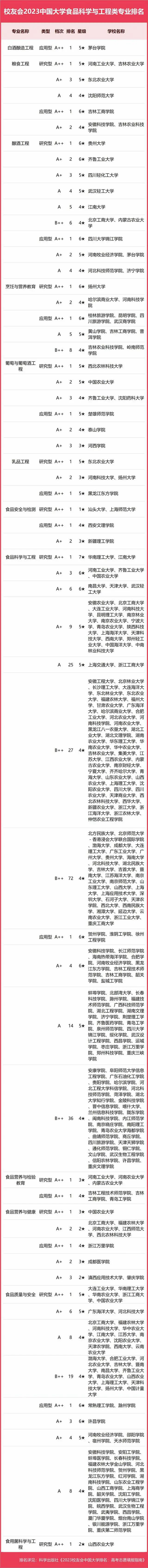 2023中國大學(xué)食品科學(xué)與工程類專業(yè)排名