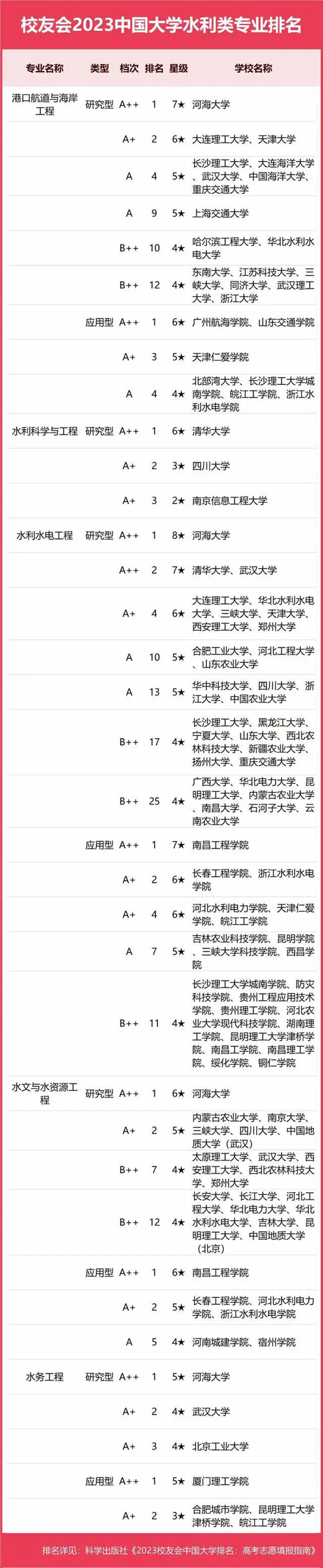 2023中國大學(xué)水利類專業(yè)排名