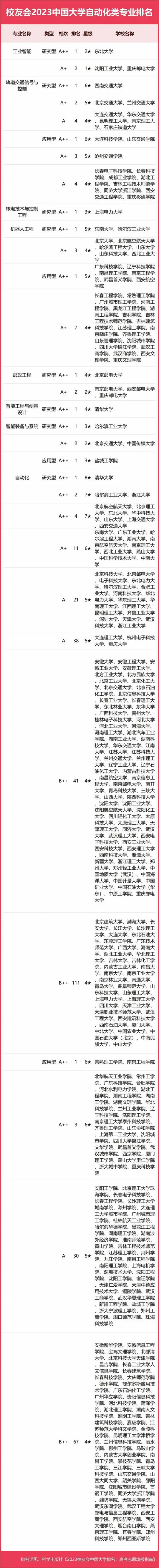 2023中國大學(xué)自動(dòng)化類專業(yè)排名