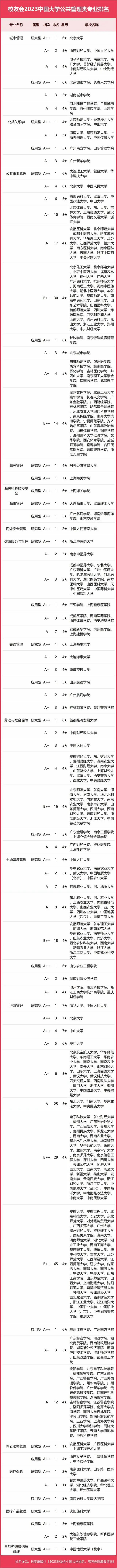 2023中國大學(xué)公共管理類專業(yè)排名