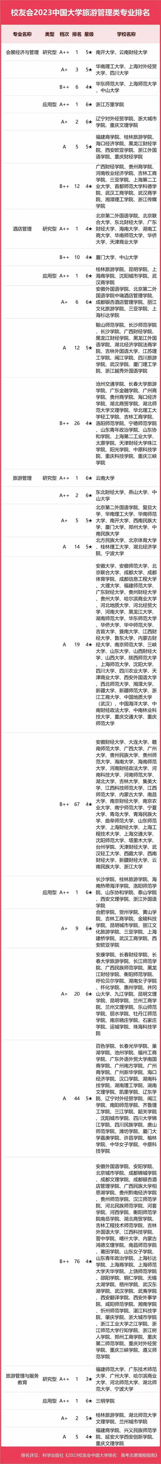 2023中國大學(xué)旅游管理類專業(yè)排名