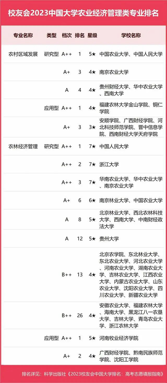 2023中國大學(xué)農(nóng)業(yè)經(jīng)濟(jì)管理類專業(yè)排名