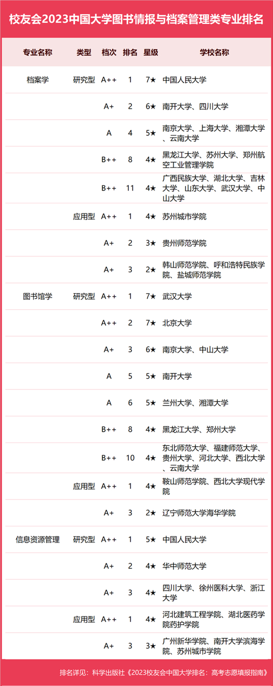 2023中國大學(xué)圖書情報(bào)與檔案管理類專業(yè)排名