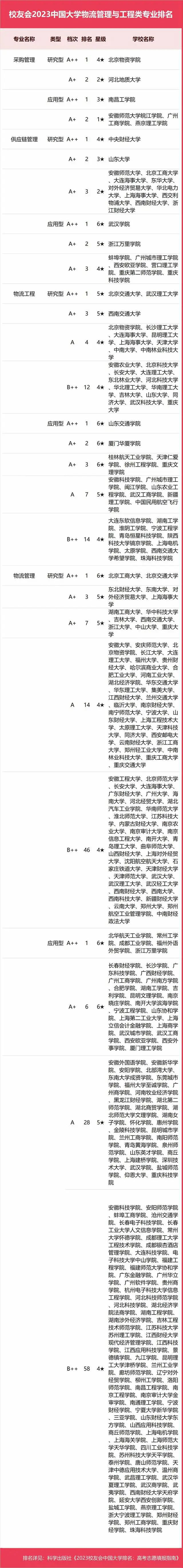 2023中國大學(xué)物流管理與工程類專業(yè)排名