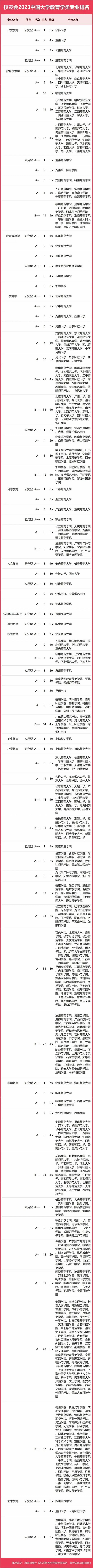 2023中國大學(xué)教育學(xué)類專業(yè)排名