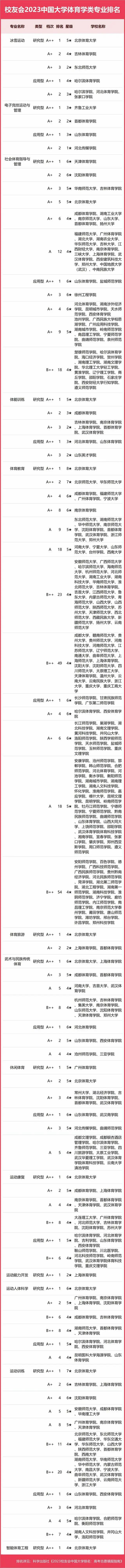 2023中國大學(xué)體育學(xué)類專業(yè)排名